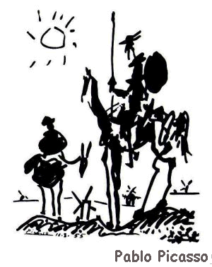 I det følgende vil jeg give en (forholdsdvis) kortfattet gengivelse af 1. del af "Don Quijote", begyndende med en præsentation af bogens hovedpersoner. Jeg læste bogen første gang som dreng, og har genlæst den her i 2014 forud for turen i "Don Quijotes fodspor" med medlemmer/venner af "Den Danske Kirke Øst For Malaga". Ethvert forsøg på at genfortælle denne fantastiske roman vil uvægerligt komme til kort overfor den sprudlende original. Så læs den selv. Måske kan dette skærpe din appetit.