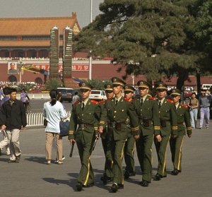 Måske kan du som jeg huske den såkaldte "massakre", som fandt sted på den Himmelske Freds Plads i 1989 i forbindelse med demonstrationer for demokrati. Den 4. maj 1989 marcherede omkring 100.000 studenter og arbejdere fredeligt gennem Beijing i protest mod styrets korruption. Den 20. maj erklærede styret undtagelsestilstand, men demonstrationerne fortsatte, hvorefter militæret fik ordre på at anvende magt for at stoppe opstanden. Det kulminerede den 4. juni 1989, da 27. division af Folkets Befrielseshær rykkede ind med tropper og tanks på Den Himmelske Freds Plads. Dette berømte billede, som viser en demonstrant, der holder de fremrykkende tanks tilbage i mere end en halv time, blev taget af Jeff Widener, Associated Press den 5. juni 1989 fra et vindue på Beijing Hotel med en 400 mm telelinse. Der er stor uenighed om antallet af dræbte. New York Times siger 400-800, det kinesiske Røde Kors omkring 2.600, mens studenterne fastslår, at mere end 5.000 blev dræbt. Styret foretog efterfølgende en lang række anholdelser for at undertrykke bevægelsen, begrænsede adgangen for udenlandsk presse, og sørgede for kontrolleret dækning i den kinesiske presse. Den voldelige undertrykkelse resulterede i massiv international fordømmelse af det kinesiske styre. Hvert år på den 4. juni er der forstærket vagt på pladsen for at sikre, at der ikke opstår uroligheder.