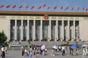 Vestsiden af Den Himmelske Freds Plads domineres af den monumentale "Folkets Store Hal" ("Renmin Dahuitang"), som er bygget i 1959. Den optager ca 172.000 m2. Her forsamles Folkekongressens 3.000 medlemmer én gang om året i to uger for at ratificere lovforslag. Folkekongressen, hvis medlemmer vælges for fem år ad gangen, udgør den lovgivende forsamling, men i realiteten er den blot et gummistempel for Politbureauet, hvis direktiver følges slavisk. Hovedhallen på 76x60 meter kan rumme mere end 10.000 gæster. Der findes også en sal til afholdelse af banketter for indtil 5.000 deltagere. Hver af provins og region har en sal, som er indrettet efter områdets egen stil og kultur.