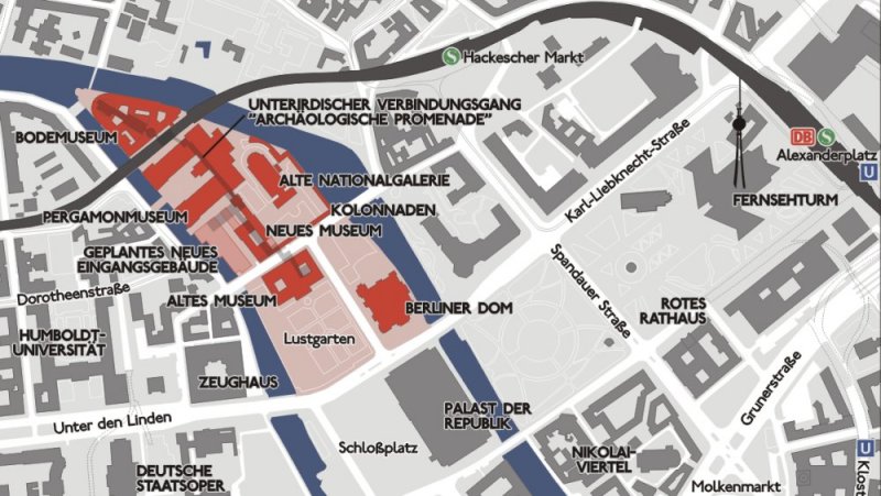 Unter den Linden skærer nu Museumsøen, Museums Insel, hvilket er navnet på den nordlige del af en større ø, der ligger i Spree. Øen har fået navn efter de fem fantastiske museer, som ligger her. Jeg vil vende tilbage til de vidunderlige museer på en anden side og foreløbigt nøjes med at nævne dem her: