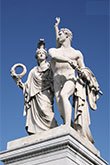Broen i sig selv er smuk, men det er især kunstværkerne på broens piller, som vækker opmærksomhed. Her er opstillet otte figurgrupper udført i hvid Carrara marmor. Skulpturerne er udført fra 1845-1857 efter forlæg fra Schinkel. Værket viser en ung mands udvikling fra helt og til hans død på slagmarken, afsluttende med, at han føres til gudernes hjem på Olympen. Jeg har fundet forklaring til figurerne på broen på denne hjemmeside: www.aviewoncities.com.