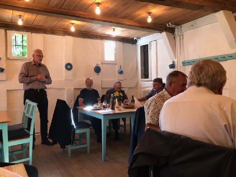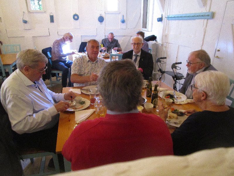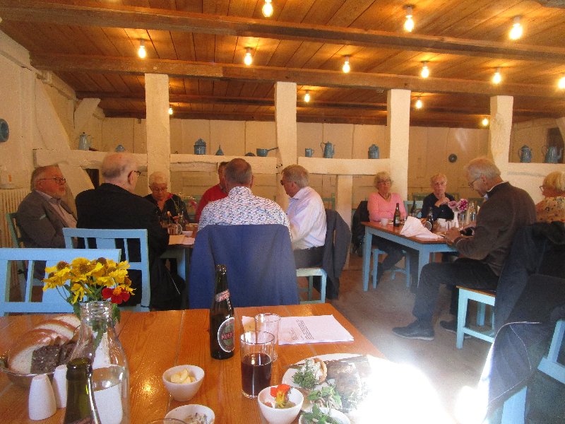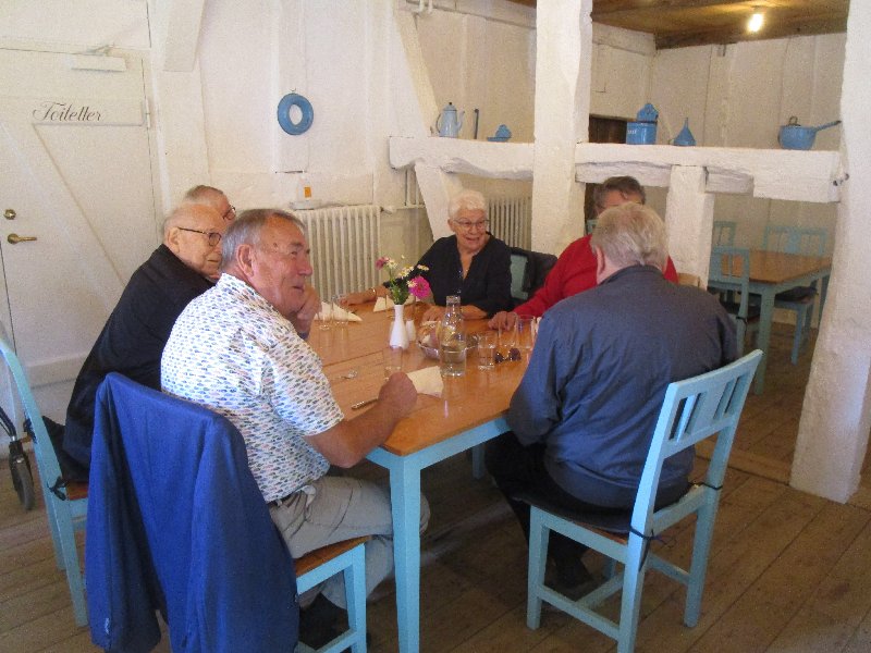 Sammenkomsten finder sted i Gæstgivergården, lokale Madam Blå, hvor vi sidder ved 8-mands borde.