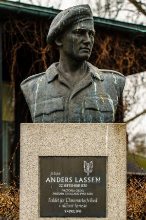 Der er opstillet buster til minde om Anders Lassen følgende steder: