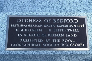 Mikkelsen fortsatte nord på til Canada for at købe et passende skib til ekspeditionen. Den barske arktiske verden krævede et robust fartøj, og et sådant havde Mikkelsen fundet i Victoria på Vancouver Island. Skibet blev omdøbt til "Duchess of Bedford" til ære for deres vigtige sponsor. Fartøjet, som var en skonnert på 66 tons fra 1879, havde efter sigende været anvendt til jagt af sæler, perlefiskeri samt opiumssmugling i Fjernøsten.