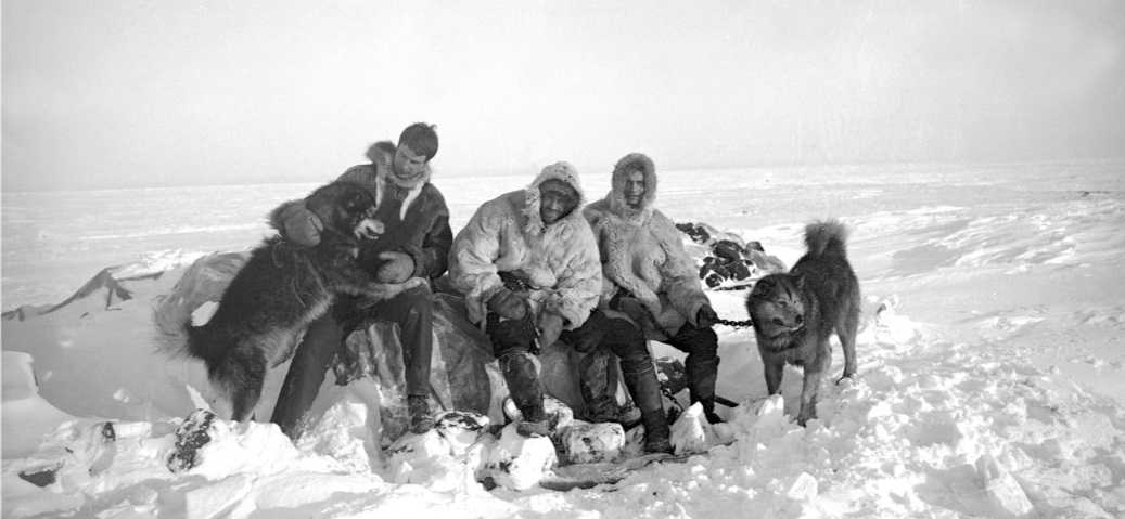 Fra venstre: Ernest de Koven Leffingwell, Ejnar Mikkelsen og dr. G.P. Howe, februar 1907.