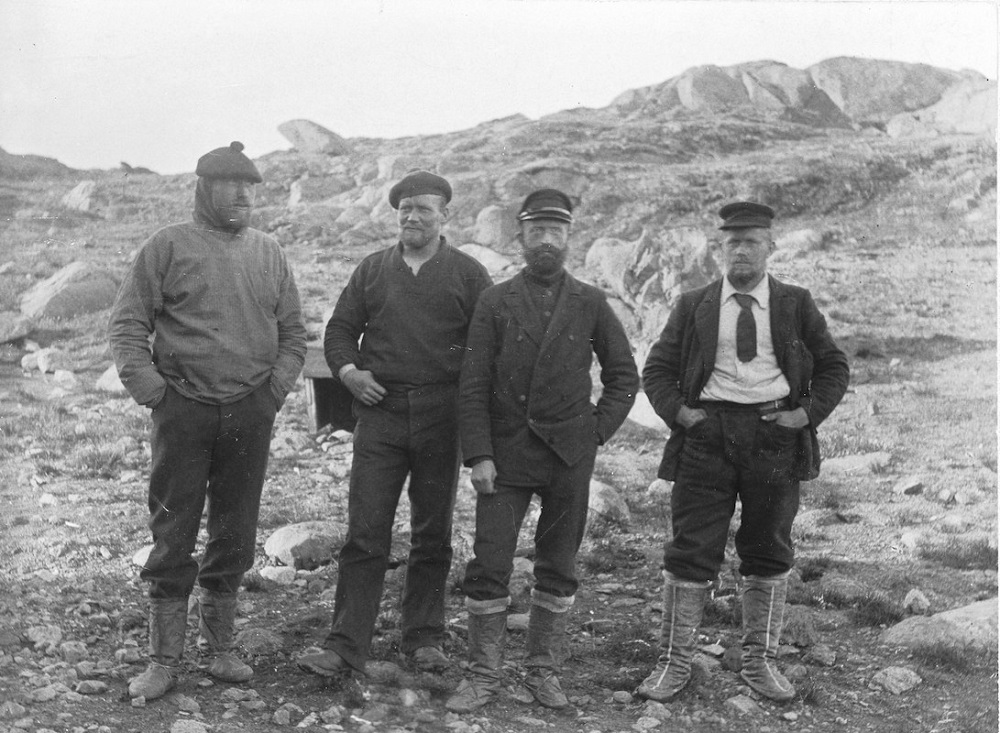Amdrup-ekspeditionens medlemmer: G.C. Amdrup, Axel Jakobsen, Søren Nielsen og Ejnar Mikkelsen.