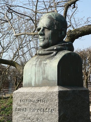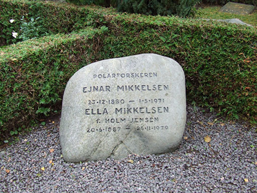 Hustruen Ella Mikkelsen og Scoresbysund-komitéen ønskede at rejse et monument over den store polarforsker. Det skulle være en buste, udhugget i sten fra Scoresbysund. Man fandt Det lykkedes at finde en sten i passende størrelse og med afdæmpede farver i nærheden af det sted, hvor Ejnar Mikkelsen i 1924 havde mistet roret. Stenen blev fragtet til København på "Thala Dan". Den 12. oktober 1974 blev der afsløret en buste af Ejnar Mikkelsen, udført af billedhuggeren Adam Fischer. Efter forslag af Ebbe Munck blev den opsat i nærheden af monumentet over Danmark-Ekspeditionen. Ella Mikkelsen afslørede monumentet, og sønnen Aksel Mikkelsen takkede på familiens vegne. En tilsvarende buste af Ejnar Mikkelsen står og skuer ud over Scoresbysund.