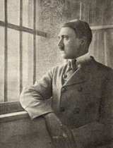 Den 11. november 1923 blev Hitler indsat til afsoning i Landsberg fængsel lidt udenfor München, hvor han sad sammen med godt 40 andre nationalsocialister. Hitler fik en enecelle, men måtte modtage gæster udefra. Han læste en del bøger, især tysk historie og politisk filosofi. Han omtalte senere lidt foragtende fængselsopholdet "et statsbetalt studium". Rudolf Hess, en af hans mest hengiven tilhængere, fungerede som hans privatsekretær. Hitler brugte bl.a. tiden til at skrive Mein Kampf, der er en blanding af en forherligende selvbiografi og politisk manifest. Hans ønske var at få etableret sin position i partiet, ikke kun som politiker, men også som en intellektuel autoritet, der selv om han aldrig havde studeret og havde måttet forlade skolen uden eksamen var en original tænker. Hitlers oprindelige titel på bogen var Viereinhalb Jahre Kampfes gegen Lüge, Dummheit und Feigheit - Fire og et halvt års kamp mod løgn, dumhed og kujoneri. Heri fremlagde Hitler sin 'verdensanskuelse', som er: