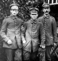 Den 1. august 1914 deltog Hitler i en forsamling på Odeonplatz i München, hvor han sammen med en tusindtallig oprømt skare fejrede, at Tyskland havde erklæret krig mod Rusland. To dage senere meldte han sig som frivillig og blev optaget i et bayersk regiment. Hitler beretter efterfølgende i Mein Kampf [MK side 169], at han "overvældet af stormende begejstring sank på knæ og takkede himlen af fuldt hjerte, fordi den skænkede mig den lykke at få lov til at opleve denne tid". Han så her en mulighed for at komme ud af sin triste og udsigtsløse tilværelse. Hitler kom til et bayersk regiment, det såkaldte Listregiment, hvor han mødte Rudolf Hess og andre, som siden skulle blive hans nære medarbejdere.