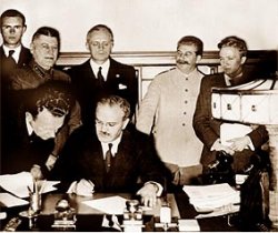 Den 20. august 1939 sendte Hitler et telegram til Stalin og oplyste ham om, at der en af de nærmeste dage ville opstå en krise mellem Tyskland og Polen, og han bad Stalin om at modtage Ribbentrop i Moskva senest den 23. samme måned. Den 23. august 1939 underskrev de to udenrigsministre, Ribbentrop og Molotov den tysk-russiske ikke-angrebspagt. Det fandt sted i Kreml under overværelse af Stalin. Af et hemmeligt tillæg til pagten fremgik, at Stalin fik frie hænder til at tage de områder tilbage, som Rusland havde mistet efter 1. verdenskrig. Det omfattede lande som Estland, Letland, Litauen, Finland, dele af Rumænien og ikke mindst hele den østlige del af Polen.