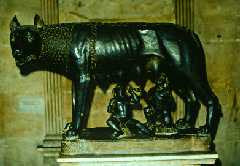I muséet på Capitol (Capidoglio) ses denne figur af hunulven og de diende tvillinger. Denne figur har i århundreder været et totem for Rom. Vi ved, at en statue af en hunulv blev indviet på Capitol i år 296, men vi ved ikke med sikkerhed, om det er denne figur. Vi ved dog, at tvillingerne først er kommet til i renæssancen - de er således ikke en del af den oprindelige figur. Kunstkendere mener, at ulven er af etruskisk oprindelse. Men nok med historie(r). Lad os vende tilbage til vores egen tid.