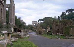 Via Sacra er hovedgaden, der fører gennem Forum. Den går fra Titus triumfbue i syd til Septimus Severus buen i nord. Langs med denne vej lå templer for hovedguderne, basilikaer til behandling af retssager til til handel. Når de sejrende hære vendte tilbage til Rom, så generalen og soldaterne frem til deres triumftog ad Via Sacra. Med i optoget, som blev arrangeret af senatet, var krigsfanger - og helst den tilfangetagne konge fra de fjendtlige styrker. Undervejs ofrede man til guderne - altid til overguden Jupiter i hans tempel. Og turen sluttede med modtagelse på Capitol. Senatsbygningen - Curia - er det eneste intakte bygningsværk på Forum Romanum - formentlig fordi det i mange år blev brugt som kirke. Curia blev planlagt af Julius Cæcar og færdiggjort af Augustus i år 29. I hver side af rummet er der 5 rækker pladser, hvor de ca. 300 senatsmedlemmer har løst Roms - og verdens - problemer. Væggene er bare, men der er et utrolig smukt marmorgulv i rummet. I middelalderen blev de smukke broncedøre fjernet og placeret i Laterankirken (som vi også kommer til på et tidspunkt, om du hænger på).