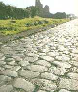 Ikke langt fra Caracallas termer går den vel bedst kendte af de romerske veje, ofte kaldet Vejenes dronning. Via Appia menes påbegyndt år 312 før vores tidsregning. Den var den første store vej i et utroligt netværk, som forbandt Rom med alle dets besiddelser og indflydelsesområder ("Alle vejer fører til Rom). Disse veje var oprindelig alene tænkt for de romerske legioner, men også købmænd (krigens uundgåelige følgesvende) og andre rejsende fik gavn af dem. Den har sit navn efter censor Appius Claudius, som lod påbegynde den første strækning til Capua og Neapel. I 190 BC blev vejen forlænget til havnebyen Brindisi. Det var almindeligt at dødsdømte slaver blev korsfæstet ved Via Appia. Et af de sorteste øjeblikke var korsfæstelserne efter slaveoprøret (71 B.C.). Gladiatoren Spartacus igangsatte oprøret sammen med 70 andre gladiatorer fra en gladiatorskole. Oprørerne søgte tilflugt på Vesuv, hvor efterhånden mange sluttede sig til dem. Efterhånden voksede de til en hær på næsten 90.000 mand og indtog det meste af Syditalien. Spartacus ønskede af føre slaverne nordpå over Alperne for at de kunne komme tilbage til deres hjemland, men størsteparten ønskede ikke at forlade Italien. Oprøret sluttede med en knusende nederlag til Crassus. Ca. 6.000 slaver blev korsfæstet på begge sider af Via Appia fra Rom til Capua, en strækning på 212 km. Hvis beretningen taler sandt, har afstanden mellem korsene været ca. 70 meter. Og kun 35 meter, hvis korsene på de 2 sider af vejen har været kun 35 meter. (Det må have været et makabert syn, som jeg heldigvis kun har set i filmen, hvor en ung Kirk Douglas spillede Spartacus. I filmen ser vi Spartacus blive korsfæstet, mens hans hustru og søn overværer det. I virkeligheden døde han på slagmarken).