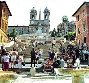 Late in the afternoon we walked to Piazza Espagna, where we started by seing the church Trinita dei Monti with it's twin towers. The front was designed by Maderno, who also made the front of San Pietro. Much of the art works were removd by Napoleon, but it's still worth a visit.