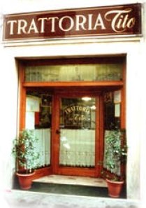 Der er selvfølgelig hundredvis af udmærkede restaurationer i Firenze. Som så ofte før faldt vi for ét bestemt spisested, nemlig Trattoria da Tito, på Via San Gallo 112, hvor vi spiste næsten hver aften. Vi "svigtede" to gange: én gang for at spise kinesisk, én gang om søndagen, hvor Tito holder lukket. Hotel Benvenuti, som ligger et par minutters gang fra Tito på Via Cavour, har på deres hjemmeside en henvisning til Tito. Her kan du også studere menukortet. Tito har været drevet af familien i en lang årrække, hvilket fotos i restauranten vidner om. Vi så bl.a. et billede, hvor Pavarotti gæstede stedet. En anden stor italiensk kunstner, Dario Fo [modtager af nobelprisen i litteratur i 1997] var også afbildet. Et tredje foto viste filmfolkene Bud Spencer og Leonardo Pieraccioni. Værtsparret Rodolfo og Loretta betjener gæsterne, og der hersker en afslappet og hyggelig atmosfære i restaurationen. Stedet var ikke overrendt, men vi oplevede dog et par gange at måtte vente på et bord. Vi vænnede os til at ankomme enten før kl 20 eller efter kl 21. Et par gange løb vi ind i en amerikansk sagfører, som tilbragte halvdelen af året i Florida og den anden halvdel i en lejlighed i Firenze. Han fortalte, at det især var de lokale, som spiste på Tito, men vi oplevede også besøg af en del amerikanske turister. Væggene i restaurationen er udsmykket med spændende vægmalerier.