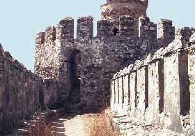 Fæstningen er den største og bedst bevarede i hele Tyrkiet. Inden for fæstningens ydre mure findes ruinerne af en moské - Suleiman moskeen, et seldjukisk mauseleum, et karavanserai (mere herom, hvis du følger med os til Kappadokien) og en overdækket basar. Øverst ligger ruinerne af en cisterne og et byzantinsk kapel. Fra toppen er der en enestående udsigt over byen, havet og ikke mindst Taurus bjergene mod nord. Samtidig får man oplevelsen af de gamle osmanniske huse og små haver, der ligger som en hel lille landsby indenfor murene. Højden over havet er godt 25o meter.