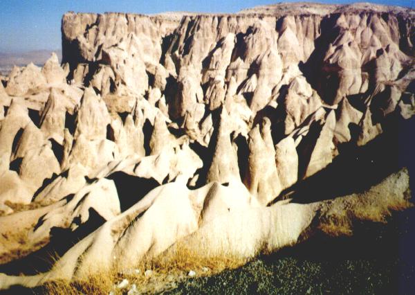 Kappadokien eller Cappadocia er et uspoleret, måneagtigt landskab i det centrale Anatolien indenfor en trekant, der dannes af Aksaray, Kayseri og Nigde. De mest spaktakulære former findes indenfor en endnu mindre trekant, afgrænset af Ürgüp, Göreme og Avanos. Dette fantastiske landskab blev skabt ved flere enorme vulkanudbrud af Mount Erciyes (3916m) og Mount Hasan (3268m) for omkring 10 millioner år siden, som begravede området under at 500 meter tykt lag af mudder, aske og lava. Over tiden blev dette materiale omskabt til tuf, som er blød og porøs klippe. Denne tuf har millioner af års erosion af regn, vind, temperaturskifte omdannet til fantastiske former (kegler, pyramider, søjler, champignon, dyr osv.) - ofte kaldet "Fairy Chimneys", "Eventyrskorstene", ofte med fine gyldne, røde og violette farver. Adskillige jordskælv har i tidens løb medvirket til yderligere modellering af de mange dale i området.