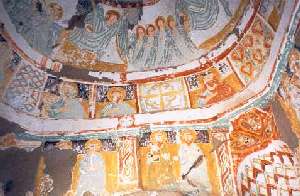Den lille byzantinske kirke, som ligger i nærheden, har ikke været udsat for vandalisering. De mange smukke fresker er forbløffende friske med især røde, gule og purpur farver på en grå baggrund. På billederne ser man jomfru Maria og jesusbarnet, ærkeenglene Mikael og Gabriel, kejser Konstantin den Store, Palmesøndag med indtoget i Jerusalem , korsfæstelsen samt forskellige helgener. Heldigvis har de tidlige fresker overlevet den periode i det 8. århundrede, hvor der var forbud mod at afbilde personer, og kun tilladt at lave geometriske figurer. De fleste fresker er i øvrigt fra det 9. - 13. århundrede.
