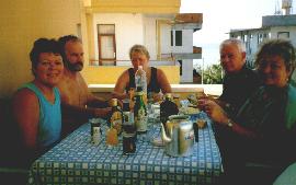 Næste morgen gik Birgit og jeg som sædvanlig på indkøb eftrer brød mv. Morgenmaden indtog vi på Kurt og Karins altan. I baggrunden kunne vi se øststranden, som ligger ca 100 meter borte. Der var også et smukt kig op til fæstningen på bjerget. Og bag os kunne vi de de smukke Taurusbjerge. Alt tegnede således godt for ferien.