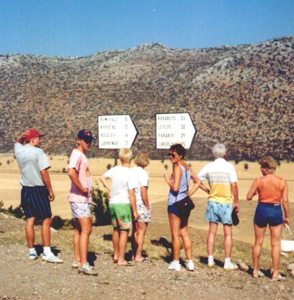 Vi besluttede os for at leje en bil og køre en tur østpå, som er mindre besøgt af turister. Da vi er 6 (vel) voksne personer, måtte vi have en minibus. Vi kiggede på et par udlejningsbutikker for at finde prisniveauet, inden vi bestemte os. Jo, de havde en 10-personers Mitsubishi minivan til udlejning. Desværre kunne vi ikke se den, da den var lejet ud. Kun nogle få år gammel og med air condition. Prisen var 100 DM for et døgn. Og vi slog til. Da vi for for at hente bilen kl 9 om morgenen, viste det sig, at bilen var et gammelt lig med buler i begge sider, manglende beklædning inde i kabinen og - som Bente kaldte det - snusket. Men bilen startede villigt, hvorefter vi startede med at få fyldt diesel på tanken, inden vi forlod Alanya ad kystvejen. Da vi havde kørt 15 minutter, blev vi standset af politiet. Vores første tanke var, at det var pga bilens miserable stand. Men efter at have påtalt et ulovligt gitter foran bilen fik vi lov til at køre videre efter præsentation af kørekort. Det samme gentog sig ½ time senere. Vi fandt ikke ud af, hvad årsagen var. Måske er det normal praksis. Måske hang det sammen med terroristangrebet mod World Trade Center ugen i forvejen. Måske hang det sammen med det tyrkiske kurderproblem. Men politiet var flinke og høflige, så det var intet problem.