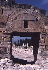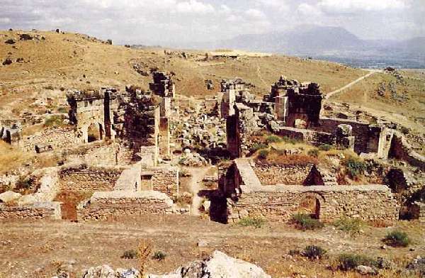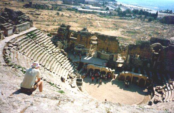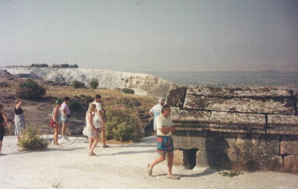 Vi kørte op til oldtidsbyen Hierapolis, hvilket betyder den hellige by. Byen menes grundlagt omkring 190 BC som et helsecenter, der allerede dengang var berømt for sine helbredende kilder. Det var også et sted, hvor de velhavende kom for at nyde deres otium - og med tiden dø. Byen voksede op omkring den hellige hule Plutonium. Hierapolis er opkaldt efter Hiera, én af grundlæggeren Telefos' hustruer - efter sigende den smukkeste. I 133 BC overgik byen til romerne sammen med riget Pergamon. I tidens løb har byen og området været ramt af adskillige jordskælv. Byen havde dog stadig fremgang, og under kejser Konstantin den Store blev Hierapolis udnævnt til hovedstad i provinsen Frygien. Kristendommen bredte sig hurtigt i Hierapolis, formentlig godt hjulpet på vej af den store jødiske koloni, som boede der. Ikke desto mindre led apostlen Philip martyrdøden i Hierapolis i år 80.