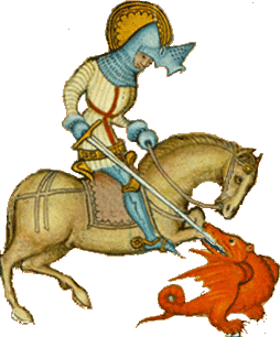 Georgius, som er spejdernes skytshelgen, blev født år 303 i Kappadokien. Da han fyldte 17 år, blev han soldat i kavalleriet, og der gik snart ry om hans dygtighed i våbenbrug og idræt, og han blev berømt for sin tapperhed, uforfærdethed og gode dyder. På sin færden kom han vidt omkring. Således kom han en dag til den lille by Salem. Her huserede et skrækkeligt uhyre, en grådig drage. Mange mænd havde prøvet at fælde den, men uden held, og man havde derfor lavet en aftale med dragen, således at den skulle vogte landet mod til gengæld hver dag at få 2 får. Imidlertid slap fårene op, og dragen forlangte nu at få ét menneske i stedet - set fra dragens side bestemt et rimeligt forlangende. Også dette måtte man gå ind på, og hver dag måtte én af beboerne gå den tunge gang til dragen.
