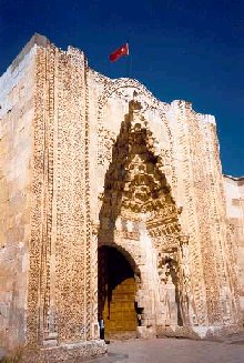 Ca 40 km før Konya standsede vi ved et såkaldt karavanserai - eller han. En indskription fortæller, at det er bygget af (eller rettere under) den seldjukkiske sultan Alaaddin Keykubat i 1229, arkitekten var Muhammed bin Havlan el Dimiski. Efter en voldsom brand i 1278 blev karavanseraiet restaureret af den lokale guvernør Seraceddin Ahmed bin El Hasan, som en anden inskription fortæller. Med sine 4800 m2 er Sultanhani det største karavanserai i Tyrkiet. Byggematerialet er smukke sandsten. Sultanhani er meget monumental og ligner en fæstning - hvad det for så vidt også er tænkt. Indgangen sker gennem en stor og flot udsmykket jernportal. Den indre gård er omgivet af en arkade af værelser på venstre side og overdækkede arealer på højre side. Værelserne indeholdt soverum, lagerrum, baderum mv. Disse rum var selvfølgelig opvarmede og oplyst med lamper og stearinlys. Om sommeren overnattede gæsterne almindeligvis i området i højre side. I den bageste del er der en stor, overdækket stald med plads til indtil 200 kameler. Guiden gjorde opmærksom på, at der var meget højt til loftet i stalden, da luften ellers kunne blive meget stram med så mange dyr. Midt i gården ligger en mindre moske. Jeg kan forestille mig det liv, der har været med sang, musik, historiefortælling mv., når karavaner fra forskellige dele af verden mødtes i et karavanserai.