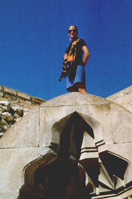 På billedet til højre poserer Natacha ovenpå moskeens tag.