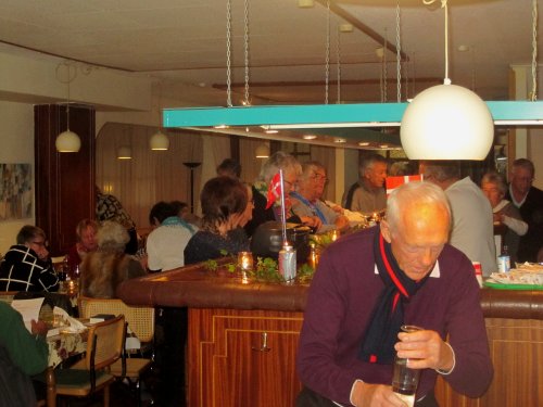 Traktementet stod som sidste vinter på stegt flæsk og persillesovs, og desserten, som Marie havde lavet var citronfromage. Så vidt, jeg kunne se, blev der ikke meget til overs. Herefter var der underholdning. Mads-Bjørn underholdt med oplæsning af folkeeventyr formummet som en gammel munk. Der var også flere konkurrencer, hvor deltagerne kunne vinde præmier, alt blev afviklet til stor morskab for alle de tilstedeværende. Der var selvfølgelig også fællessang af vores mange dejlige vinterviser: Det er hvidt herude, Sneflokke kommer vrimlende m.fl. Herefter underholdt tidligere sognepræst og provst i "Store Heddinge Domkirke" på Stevns Simon Nielsen med en sømandsvise, og Stephen sang (tempelpræsten) Sarastros arie "I disse hellige Haller" fra Mozarts Tryllefløjten, smukt akkompagneret af Inger Marie. "Kvartetten fra Stevns" suppleret med Inge var også på scenen. En dejlig aften, som vi håber vil blive gentaget næste vinter.
