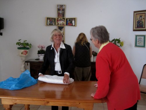 Herefter gik vi i gang med årsmødet i støttekredsen. Efter valg af dirigent aflagde Kirsten Fredelund formandsberetning. Det havde været et begivenhedsrigt år med masser af aktiviteter: ugentlig gudstjeneste i hhv. Fiskerkapellet i Almunecar og Lux Mundi i Torre del Mar, årsmøde, afslutningsgudstjeneste i Frigiliana, kyndelmissefest, foredrag af Mads om fremmede religioner, jazzkoncert mv. Hun benyttede lejligheden til at gøre opmærksom på, at der endnu var 3-4 ledige pladser på udflugten til Kastillien: "I Don Quijotes Fodspor", idet der var indløbet nogle afbud pga. sygdom. En rørt Kirsten takkede for et fantastisk samarbejde med Mads og Marie, og forsamlingen kvitterede med stående bifald. Hun fortalte, at Mads og Marie efter en fantastisk indsats gennem fire år havde besluttet at "kvitte jobbet" (jeg skriver dette i parentes, da der jo er tale om et ulønnet job, hvor præsteparret blot får dækning for deres udgifter.". Vi håber alle, at gense Mads og Marie på besøg de kommende vintre, når vinterdepressionerne blomstrer i Danmark.