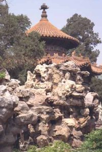 Mod nordøst ligger et lille kunstigt skabt bjerg, med en pavillon på toppen. Ved visse lejligheder klatrede kejseren herop og nød den betagende udsigt sammen med familien. Vi satte os på en bænk en tid og nød folkelivet. Det var sjovt at iagttage de mange grupper af turister, hvoraf mange var forsynet med kasketter i bestemte farver: gule, røde, blå osv.