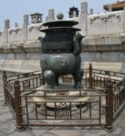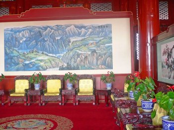 Siden 1748 under kejser Qianlong blev de 25 kejserlige jadesegl forsvarligt opbevaret her i dette lille palads. Hvorfor lige 25 segl? Forklaringen skulle være, at 25 er summen af alle de ulige cifre (1+3+5+7+9). Enkelt, ikke? I dag er de udstillet i glasmontrer på begge sider af døren. Til venstre for tronen står et ur fra 1798 - det skal efter sigende stadig fungere. Til højre et såkaldt vandur fra 1745. Dette vanddrevne ur, som er opfundet for omkring 2500 år siden, var i brug til begyndelsen af 1800-tallet.