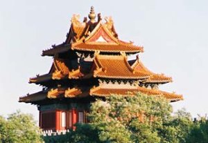 Som tidligere nævnt står der et vagttårn i hvert hjørne af Den Forbudte By. Fra disse tårne holdt bueskytter fjenderne ude fra kejserens bolig. En legende fortæller, hvorledes tårnene fik deres spektakulære udseende. Kejseren drømte en nat, at der i hvert hjørne på den røde mur stod et vagttårn, og da han vågnede, gav han besked på, at muren skulle udstyres med tårne som dem, han havde set i sin drøm. Ministeren beordrede straks rigets bedste håndværkere om at påbegynde arbejdet og forlangte, at de skulle være færdige på kun 3 måneder. Da de ikke var i stand til at bygge det ønskede tårn, blev de halshuget og et nyt hold sat på opgaven. Arbejderne var meget bekymrede, da de ikke anede, hvorledes tårnet skulle se ud. En dag sad de i et tehus og håbede på, at inspirationen ville indfinde sig. Lidt borte hørte de lyden af græshopper og gik derhen. En gammel mand, som ville sælge et bur til en fårekylling, blev hårdt afvist og bedt om at forsvinde. Han smilede og sagde: "Se nøje efter, for dette er ikke et almindeligt græshoppebur.". Det var smukt udført og havde 9 loftsbjælker, 18 søjler og 72 ribber (du husker nok, at 9 var et helligt tal). Til overflod gør jeg opmærksom på, at 9+18+72=99. Buret blev anvendt som model for de smukke vagttårne. Den gamle mand var Lu Ban, stamfader til alle kinesiske tømrere. Det fortælles, at kejseren var yderst tilfreds med tårnene.