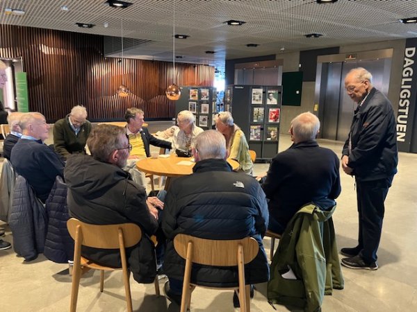 Aksel og Vibeke i forgrunden. I baggrunden med ryggen til Louis, Peter og Hanne. Overfor Ingelise, Bent, Per og Mogens.