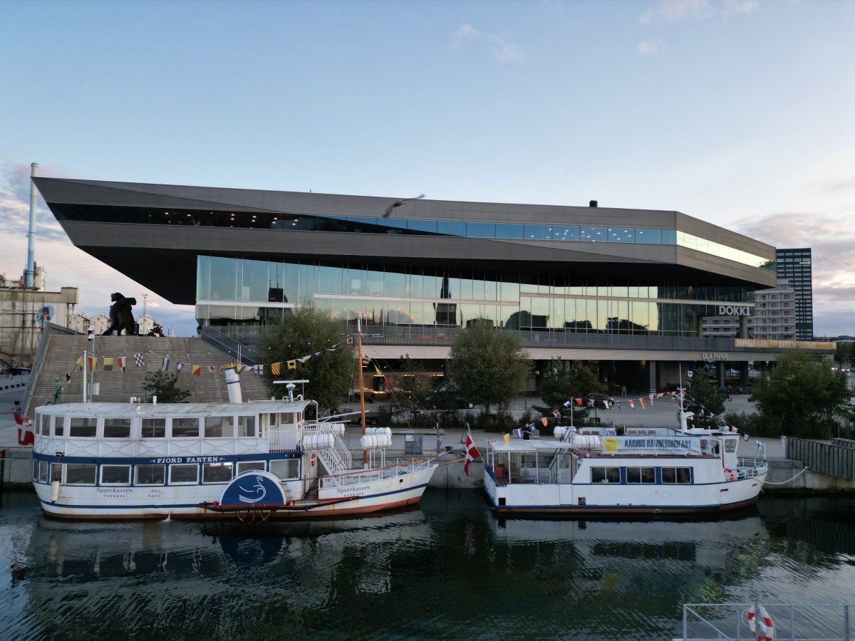 Ovenfor er et dronefoto af DOKK1 taget fra vandsiden. Til højre i billedet kan man ane letbanen, som kører mellem Odder i syd og Grenaa i nord. Under DOKK1 findes det største automatiske parkeringsanlæg i Europa med plads til over 1.000 biler. Her parkerede Aksel og jeg, som var kørt sammen fra Amager. Det var første gang, jeg benyttede anlægget, og jeg fik næsten en klump i halsen, da min lille bil forsvandt ned i dybet. Men alt gik godt, og den dukkede beredvilligt op igen til jordens overflade, da vi sidst på eftermidddagen kørte hjem.