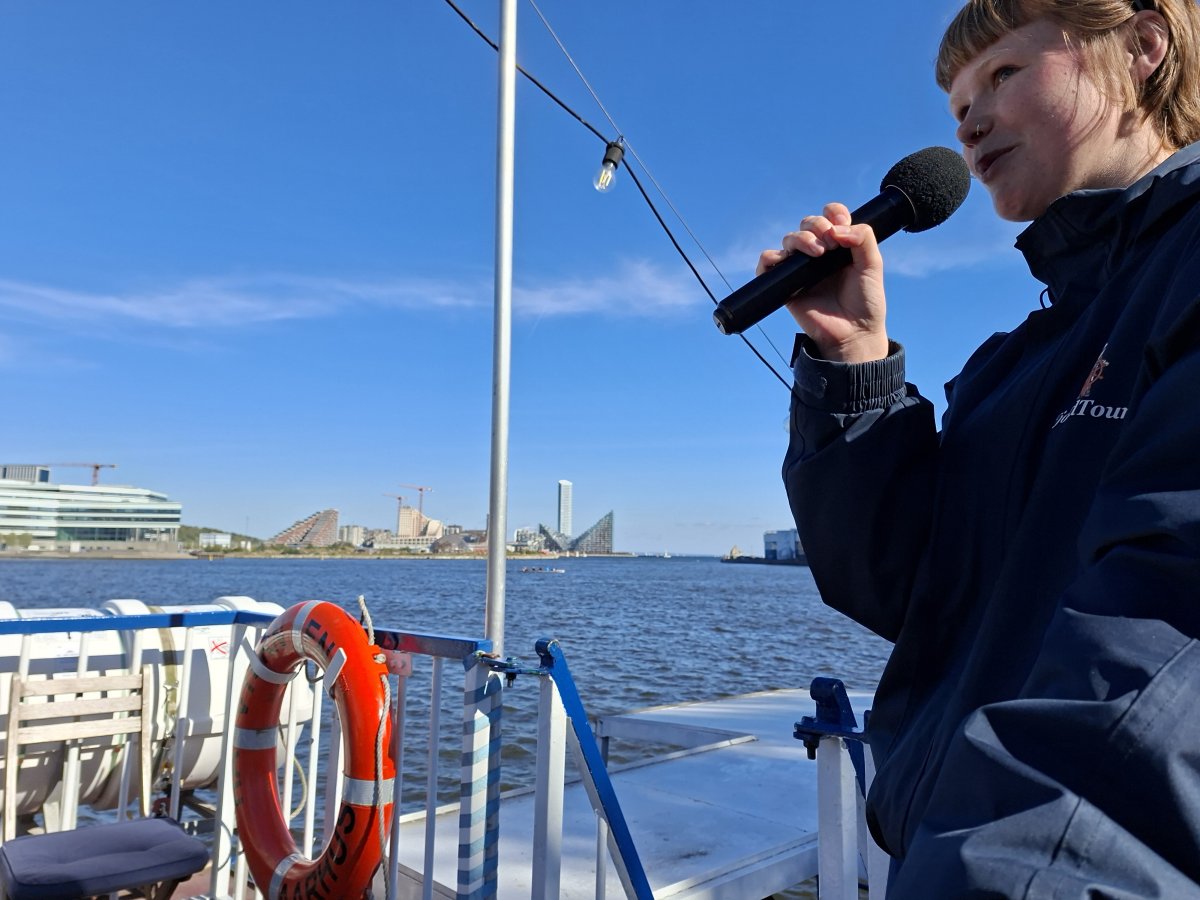 Vores guide, som viste sig at være særdeles kompetent, bød velkommen på hhv. dansk og engelsk. Hun begyndte med at fortælle, at Aarhus - oprindelig Aros, byens ved åens munding - var Danmarks næstældste by efter Ribe. Hun betonede byens grundlæggelse i vikingetiden og havets betydning for dens udvikling. Undervejs ville vi opleve det moderne byområde, Aarhus Ø, hvor der langs havnefronten i de seneste årtier er blevet opført en imponerende arkitektur.