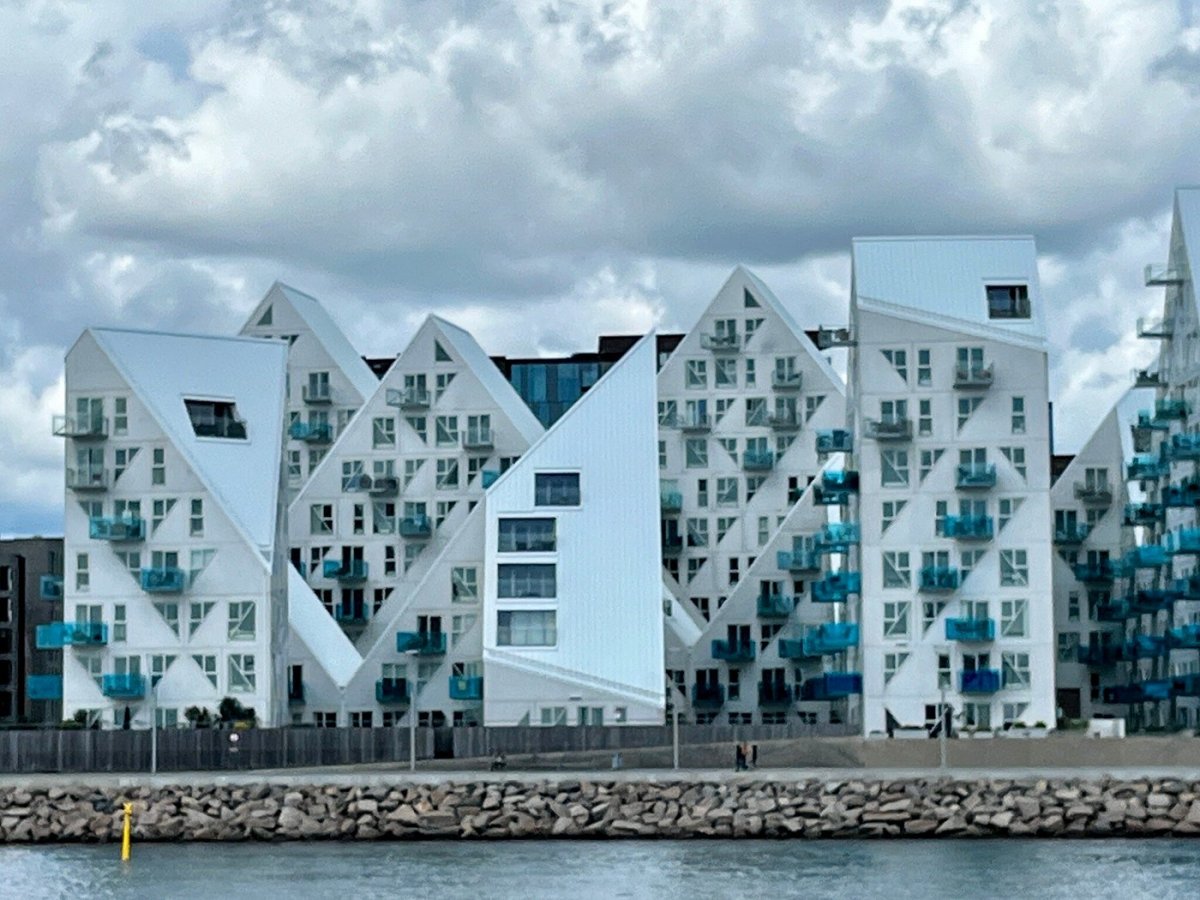 Isbjerget er et prisvindende boligbyggeri, som rummer 210 lejligheder på mellem 50 m² og 200 m². Bag byggeriet står PensionDanmark. Designet er inspireret af isbjerge – med spidse toppe og dale, der giver en fornemmelse af flydende is. Byggeriet består af fire bygninger med mere end 200 lejligheder i varierende størrelser. Facaderne er beklædt med hvid terrazzo, og altanerne har blåt, tonet glas, hvilket forstærker isbjerg-looket. Birgit og jeg har besøgt Lars og Elin der flere gange, inden de flyttede over i Lighthouse.