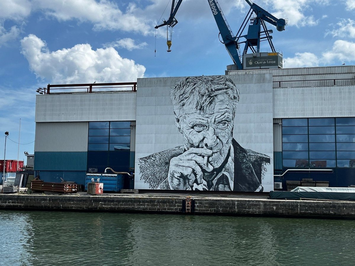 Vi kom forbi en gammel industribygning med et et stort vægmaleri af den århusianske ejendomsudvikler Olav de Linde. Han er grundlægger af et af Danmarks største privatejede ejendomsselskaber og kendt for ofte at omdanne gamle, historiske bygninger til nye formål. Guiden fortalte, at han var i gang med at opføre Danmarks højeste kontorbygning på Mindet 6 oven i det gamle foderstoflager på havnen. Bygningen forventes færdig i 2027 og skal have en højde på 143 meter - altså 1 meter højere end The Lighthouse.