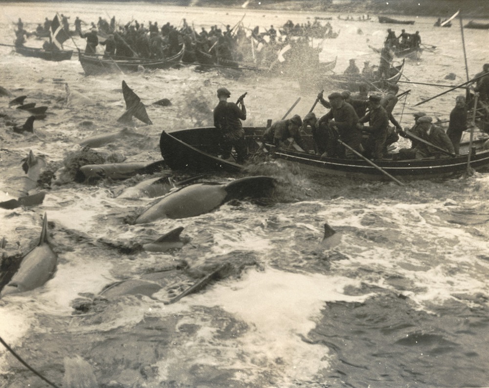 Fangst af grindehvaler på Færøerne (Arktisk Institut)