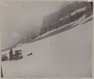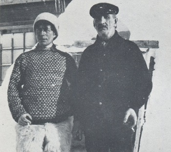 Klar til afrejse fra Point Barrow. Knud Rasmussen, Miteq (Edderfuglen) og Arnarulunguaq (Fokina).