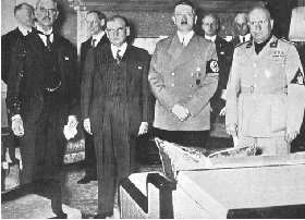 England og Frankrigs ambassadører i Prag meddelte den tjekkoslovakiske regering, at de burde opgive de områder, hvor mere end halvdelen af beboerne var tyske. Tjekkoslovakiet, som følte, at det blev svigtet af de vestlige allierede, accepterede modstræbende. I mellemtiden havde Hitler kontaktet Polen og Ungarn og tilbudt dem hver en bid af Tjekkoslovakiet, hvis de ville lade Tyskland indtage Tjekkoslovakiet. Begge lande accepterede.