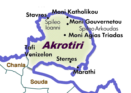 Akrotiri halvøen, som ligger nord/nordøst for Chania er bestemt et besøg værd. Vi kørte derud én af de dage, vi havde lejet bil, og blev der hele dagen. Som tidligere nævnt ligger den lokale flyveplads på Akrotiri, så du har måske været her uden at vide det. Efter et par kilometers kørsel kom vi til Profitias Ilias, en høj, som har navn efter den nærliggende lille kirke. Pladsen her har stor symbols betydning, idet der var her, at frihedskæmpere i 1897 på trods af stormagterne hejste det græske flag som indledning til Kretas frihedskamp. Legenden fortæller, at flagstangen blev skudt i stykker af en salve fra et engelsk krigsskib, men at den brave frihedskæmper beholdt flaget i hånden, mens skydningen blev indstillet i respekt for det mod, som blev udvist. Hvis du kaster blikket længere ud i horisonten, kan du se det imponerende Lefka Ori - de hvide bjerge. Da vi var der sidst i april, var der stadig sne på bjergtoppene, skønt det syntes af svinde for hver dag, der gik.