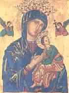 Nu, hvor jeg er i gang med at fortælle om billedkunst på Kreta, vil jeg også berette om "Our Lady of Perpetual Help". Der findes flere variationer af historien, men de begynder alle med, at en ukendt kunstner på Kreta engang i det 14. århundrede maler et billede af jomfru Maria med Jesusbarnet. I 1499 stjæler en købmand billedet fra den kirke, hvor det er ophængt, og tager det med til Rom, hvor han forærer det til en ven. På sit dødsleje fortryder købmanden sin gerning og bønfalder vennen om at levere billedet tilbage til kirken, så de troende kan se det og tilbede det. Vennen undlader i første omgang at gøre dette, men får i flere drømmesyn af jomfru Maria at vide, at det er hendes udtrykkelige ønske, at billedet bliver hængt op i den lille kirke St Matthews (Via Merulana) som ligger mellem de 2 store basilikaer Santa Maria Maggiore og St John in Laterano? Billedet vækker glæde i den lille menighed, og mange mennesker bliver omvendt til troen. Da der også sker flere mirakler i kirken, begynder man at kalde billedet "Madonna af Evig Hjælp".