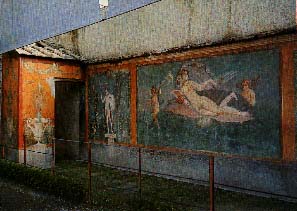 In the course of the years the building became more and more complex. They were enriched by warm and brilliantly coloured decorations with mythologic, heroic and fantastic subjects. The many houses of remarkable beauty include the House of the Vettii, one of the most interesting examples of a rich merchant's house, while the Villa of Mysteries is perhaps the most important building in the whole of Pompeii. Its most interesting feature is a cycle of paintings dating from the 1st century B.C. which decorate the walls of one of the rooms in the centre of the house. The frescos into the House of Vettii, House of Venus and in the Mistery Villa are beautiful examples of these decorations.