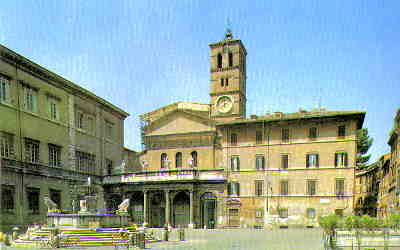 We carried on to Santa Maria in Trastevere, which lies on Pza. di Santa Maria in Trastevere. The church is probably the oldest church in Rome. Any way it is the oldest church, dedicated to Virgin Mary, built in 222. The legend says, that the chuch has been built on the spot, where a well of olive oil sprang, when Jesus was born. Especially the mosaics of the church are worth noticing. This also goes for the 22 coloums, which have been moved from Terme di Caracalla.