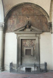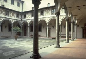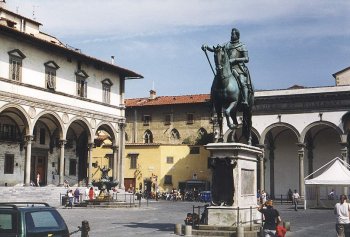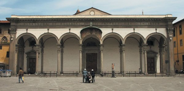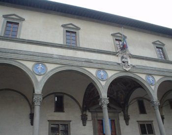 En af de seværdigheder, som stod højest på min ønskeliste, var "Ospedale degli Innocenti", "de uskyldiges hospital", verdens første hittebørnshjem. Det ligger i den nordøstlige ende af Piazza della Santissima Annunziata, som er en af renæssancens første og smukkeste torve. Vinkelret på Filippo Brunelleschis "Ospedale degli Innocenti" med den elegante loggia. ligger Michelozzos "Santissima Annunziata kirken" med sine fint afrundede søjler og smukke udsmykninger. Torvets harmoniske fremtoning skyldes, at de symmetriske bygninger, der vender ud mod torvet, alle har en facade med åbne arkadegange.
