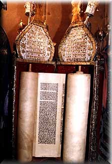 Det mest interessante i museet var efter min mening et par Torah ruller. På tavler var forklaret de ritualer, der knytter sig til disse. Jeg skal prøve at gengive mit udbytte heraf i det følgende. Torahen indeholder "Loven", dvs de fem mosebøger, oprindelig altid håndskrevne på pergament (skind af et kosher (rent) dyr), men der bliver også lavet trykte udgaver af Torahen, den helligste af jødernes bøger. Torah rullen opbevares i et skab (ark) i synagogen. Ved hver gudstjeneste (sabbat, helligdage m.fl.) læses et stykke fra Torahen. Mænd fra forsamlingen kaldes op til læsning. I de fleste tilfælde udtaler den udvalgte en velsignelse og overlader det til rabbien eller kantoren at foretage oplæsningen fra Torahen i hans sted. Oplæsningen har nærmest karakter af sang, og Torahen er forsynet med små symboler, som viser hvilken melodi, der skal bruges. Hertil kommer, at der almindeligvis ikke er vokaler i teksterne, så det er en udfordring af læse fra Torahen.