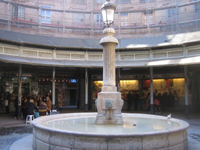 Midt på den charmerende plads står en fontæne, omgivet af små butikker, som sælger typisk valenciansk keramik og især ting til håndarbejde. Der ligger også et par tapas barer omkring pladsen. Ved flere ad de små borde sad kvinder, som var travlt optaget med håndarbejde, formentlig til salg i butikkerne. Det siges, at man helst skal besøge Plaza Redonda om søndagen, hvor der er marked, og hvor det vrimler med turister. Personligt er jeg ikke så vild med alle de turister, som bare render i vejen for os andre ;-).