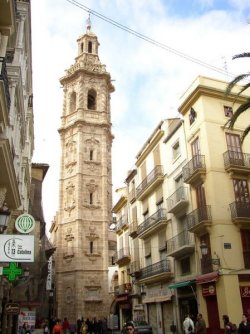 Klokketårnet på domkirken, El Micalet og klokketårnet på Santa Cataline kirken siges at være "mand og hustru". De to tårne minder lidt om hinanden, dog er El Micalet streng og alvorlig, mens Santa Catalina tårnet er lettere og mere elegant - det er måske dette, der har givet anledning til den folkelige opfattelse. Der er messe i kirken på hverdage kl. 10.30, 13.00 og 18.30; på søn- og helligdage kl 11.30, 12.30, 13.30 og 18.30. Der er kun adgang til kirken, mens der forrettes kirkelige handlinger, men da vi var der en søndag, var der messe næsten en time, så vi sneg os derind en halv times tid. Man kan med god ret sige, at kirken er en messe værd - unskyld.