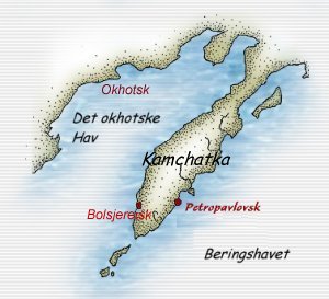 I september sejler de to ekspeditionsskibe og to forsyningsskibe til vestsiden af Kamchatka. Bering beslutter at lade de to forsyningsskibe, som næppe vil kunne klare de barske forhold i Stillehavet, overvintre i Bolsjeretsk, mens de to ekspeditionsskibe sejler syd om kamchatka for at nå frem til stationen på østsiden. "St. Peter" er lige ved at forlise, da den runder sydspidsen af Kamchatka og bliver overrasket af et voldsomt tidevand, og først den 6. oktober sejler den ind i sin vinterhavn. Man venter forgæves på at løjtnant Sofron Khitrov skal dukke op med det skib, som han en gang er forlist med, men skibet bliver halvvejs slået til vrag, da han forsøger at runde sydspidsen af Kamchatka, og han må liste tilbage til Bolsjeretsk, hvorfra skibets forsyninger i løbet af vinteret transporteres tværs over Kamchatka. Stationen på østsiden af Kamchatka bliver døbt "Petropavlovsk" (navngivet efter de to skibe Peter og Poul). Han udnævner svenskeren Sven Haxell, som har været næstkommanderende siden Okhotsk, til førsteløjtnant. Hans indsats ifm ekspeditionens transportproblemer har vist, at han er særdeles samvittighedsfuld og pålidelig. Waxell har sin 12-årige søn Lars med på turen. Den uheldige Khitrov bliver udpeget til næstkommanderende på "St. Peter" - måske for at Bering kan holde et vågent øje med ham. Politisk er det formentlig også fornuftigt at have en russer blandt sine officerer. Den læge, som var udset til at deltage på ekspeditionen til Amerika bliver imidlertid syg og må sendes tilbage til St. Petersborg. Bering får da den tanke, at spørge Steller, om han vil tage med i lægens sted. Ganske vist er Steller botaniker, men Bering ved, at Steller har studeret medicin og dertil kommer, at han har et livligt og fornøjeligt væsen. Det kan nok være tiltrængt i betragtning af de enorme udfordringer, som ekspeditionen står overfor. Steller, som egentlig skulle have været med Spangsberg til Japan, indvilliger henrykt og begiver sig straks afsted fra Bolsjeretsk til Petropavlovsk på hundeslæde, en tur på godt 200 km.